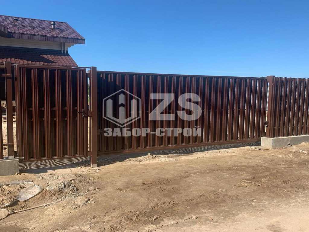- Забор на ленточном фундаменте из евроштакетника 45 метров