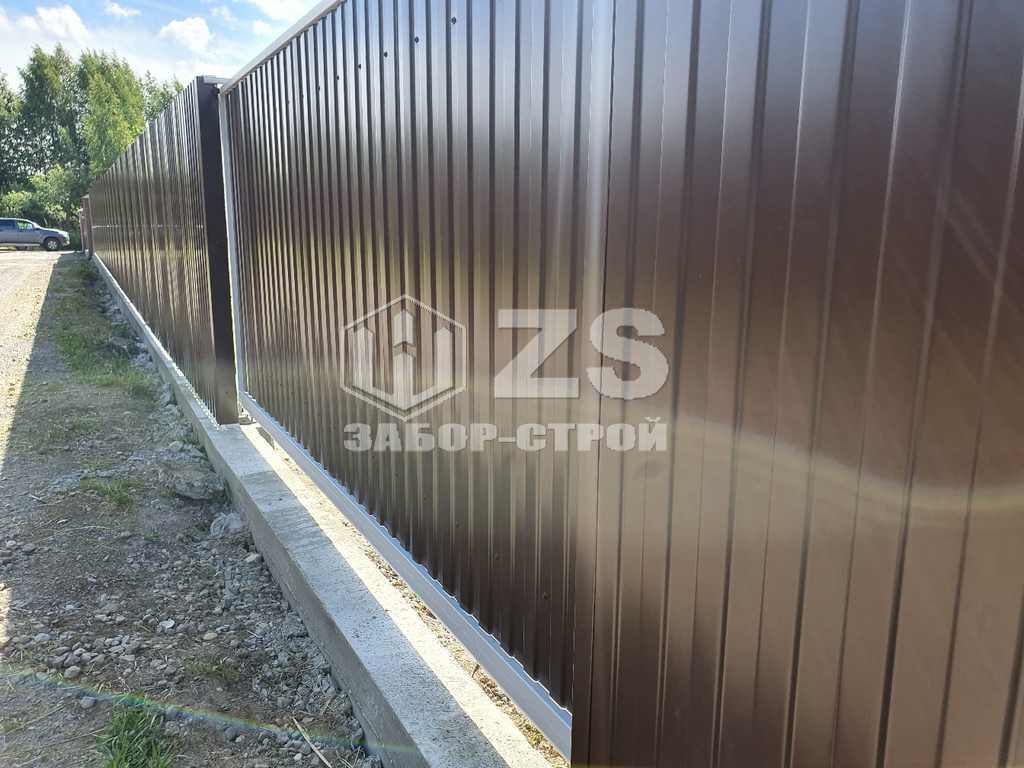 - Забор на ленточном фундаменте из профнастила 50 метров